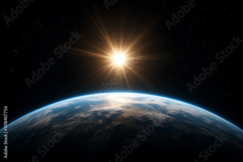 © MonoMint, Fototapeta premium High-Contrast Image of Earth's Edge with Sunlight Rays in Space