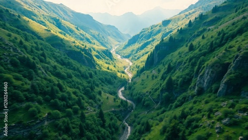 © UA Anatiel, Naklejka premium High-Definition Aerial View of a Mountain Valley in Spring