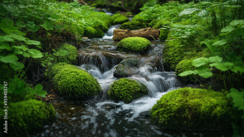 © Zac, Obraz premium High-Definition Forest Scene with Mossy Rocks