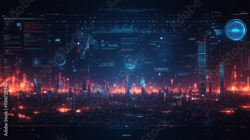 © 楠 刘, Obraz premium High definition PPT design background map with super detailed parts, integrating science, technology, and urban elements, simple and professional style, suitable for business presentations.