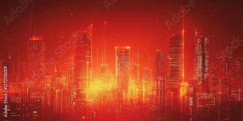© RizArt, Fototapeta premium High density cityscape at night glows with orange light
