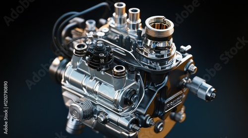 © Fenny, Fototapeta premium High-detail engine pump, studio shot, dark background, automotive industry