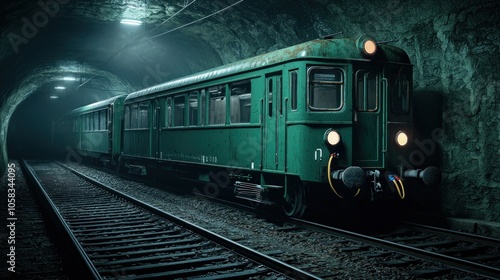 © 2D_Jungle, Obraz premium High-detail image of a hydrogen-powered train in a dimly lit tunnel setting for advanced transportation solutions