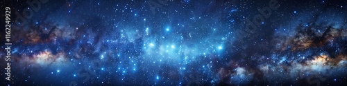 Fototapeta premium High-detail Milky Way illustration, blue luminescence from the center, illuminating stars, representing the beauty and mystery of the universe.