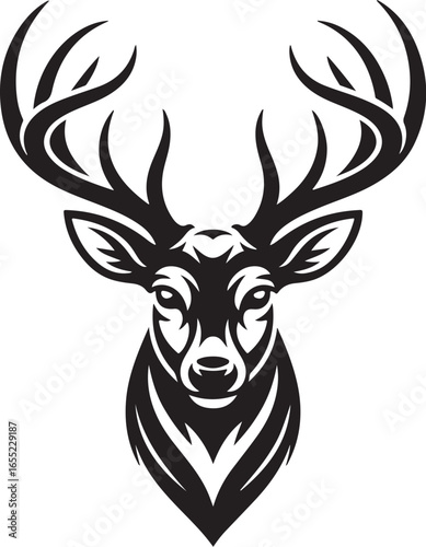 Naklejka premium High Detail Stag Head Vector Illustration for Tattoo, Apparel, and Logo Use