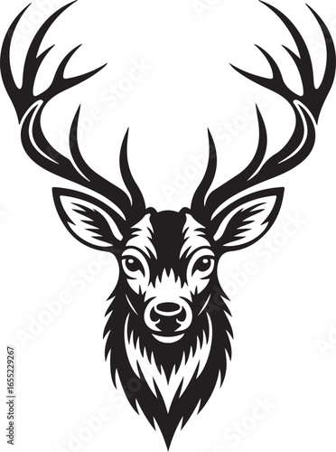 Naklejka premium High Detail Stag Head Vector Illustration for Tattoo, Apparel, and Logo Use