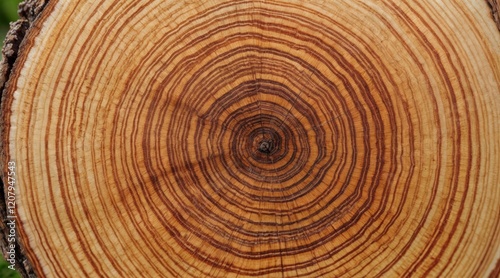 Fototapeta premium High-detail wooden surface close-up with annual rings and prominent knot, rustic tree slice with natural patterns and textures, warm earthy tones, and organic feel.