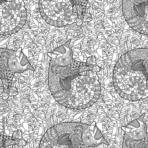 © lezhepyoka, Naklejka premium High detailed seamless pattern with cat.