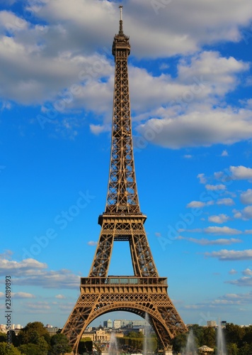 Fototapeta premium high eiffel tower with very bright colors and white clouds in th