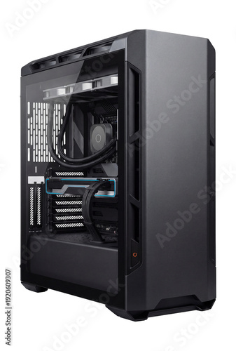 © OMD, Obraz premium High-end gaming desktop with reinforced GPU bracket and liquid cooling support.