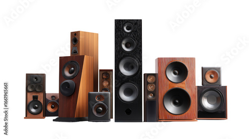 Fototapeta premium High-End Speakers: A flat lay of high-end speakers with sleek designs, isolated on a Transparent background, PNG file.