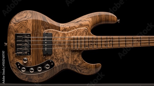 Fototapeta premium High-end wooden electric bass guitar, isolated on black background.