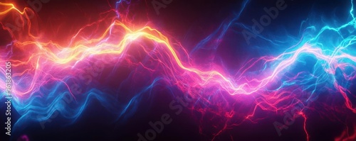 Fototapeta premium High-energy clash of neon light waves, vibrant electric impact, Abstract...