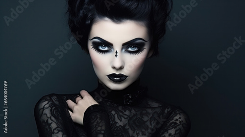 Fototapeta premium High Fashion Model Girl Portrait with Trendy gothic make-up, Black Hair...