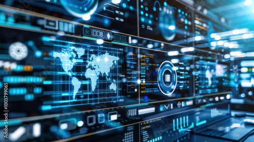Obraz premium High Fidelity Digital Interface with World Map Elements
