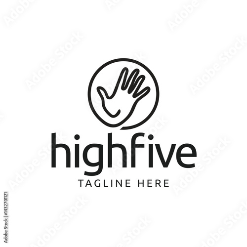 © Nuswantara, Obraz premium high five hand minimalist logo vector