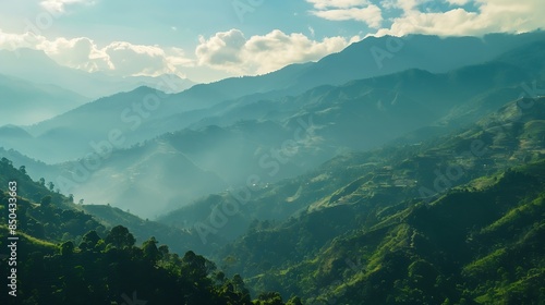 © Generative AI, Fototapeta premium High mountain in morning time Beautiful natural landscape : Generative AI