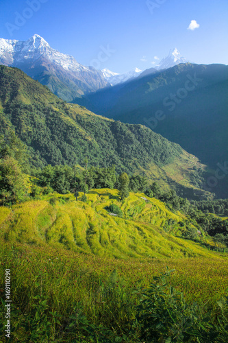 © grafixme, Obraz premium High mountains in the Himalaya, Pokhara, Nepal