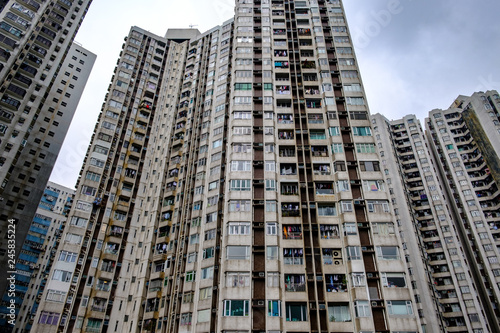 Naklejka premium High multistoried apartment buildings in residential city district. Abstract urban background.