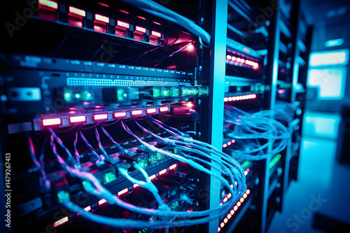 © MDZOHURUL, Fototapeta premium High Performance Data Center Operations and Network Devices