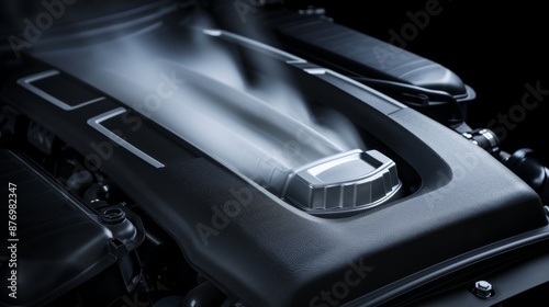 © Paul, Naklejka premium High-performance engine emitting controlled heat, showcasing cutting-edge efficiency, sleek design emphasizing technological prowess