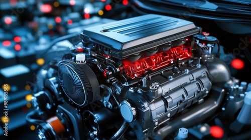 Fototapeta premium High-Performance Engine with Vibrant Red Details