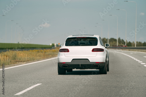 © AlexGo, Fototapeta premium High-performance German SUV driving down highway.