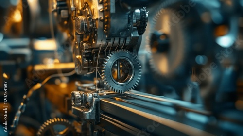 © Arthaphan, Fototapeta premium High-performance industrial sewing machine factory machinery close-up technological environment detailed viewpoint precision engineering