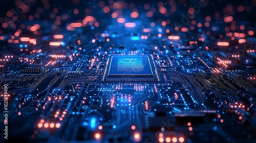 © lime, Obraz premium High-Performance Microprocessor Surrounded by Glowing Circuits. Generative AI