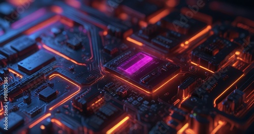 © MIA, Obraz premium High-Performance Processor on Circuit Board with Glowing Core and Pins