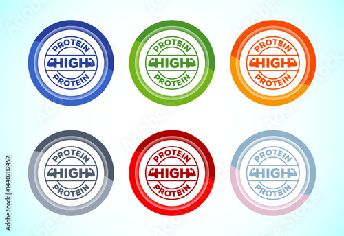 Obraz premium High protein icon design illustration, High protein label badge sign, 6 color button design set