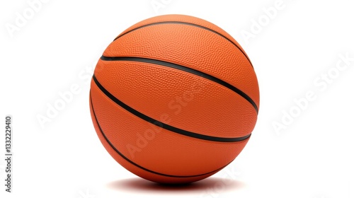 © Dmitrii, Fototapeta premium High-quality basketball isolated on a white background. Textured orange ball used for professional and recreational play. Ideal sports equipment for games, training, and competitions