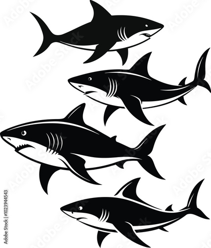 © Sadik, Fototapeta premium High-Quality Black and White Animal Silhouettes and Steampunk Mechanical Creatures Vector Collection