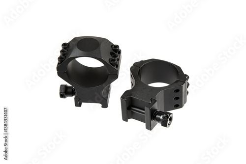 © solidmaks, Obraz premium High-Quality Black Scope Mount Rings for Precision Rifles