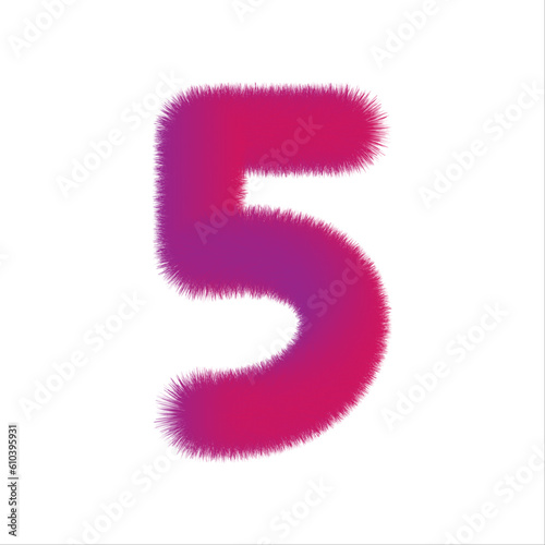 Naklejka premium High Quality 3D Shaggy Number 5 on White Background . Isolated Vector Element
