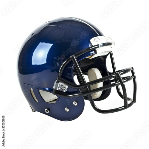 © Jenjira, Naklejka premium High-quality image of a blue football helmet with a black faceguard, perfect for sports safety and equipment use in American football.