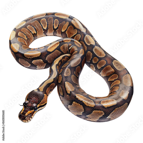 © Miso Ai, Obraz premium High-quality image of a coiled python snake with intricate patterns and textures, ideal for educational or nature-themed content.