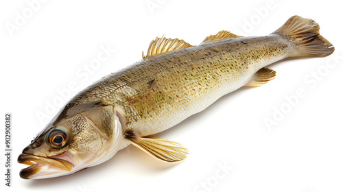 Fototapeta premium High-quality image of a fresh walleye fish isolated on a white background, ideal for culinary, seafood, and nature-related projects.