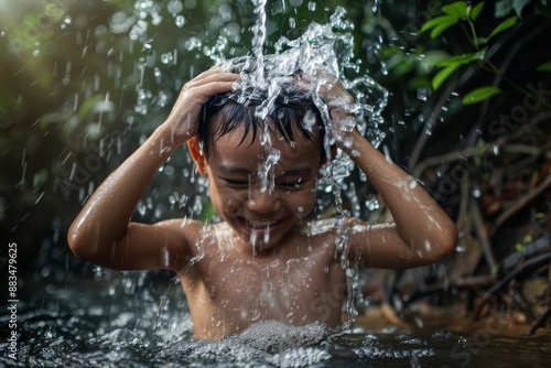 © ArtSpree, Obraz premium High-quality image of a man leisurely walking through the parted waves in the water. Beautiful simple AI generated image in 4K, unique.