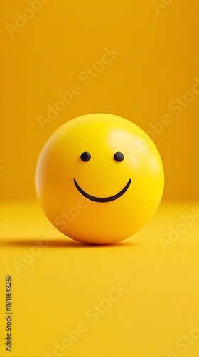 Fototapeta premium High quality image of smooth yellow sphere with a simple black smiley face on a vibrant yellow background.