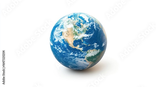 © Suphawan, Fototapeta premium High-quality photo of a spinning earth globe, frozen mid-motion, isolated on a plain white background