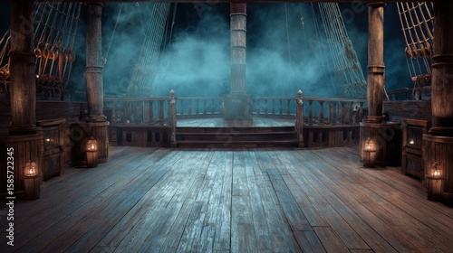 © Stock by Hemal, Fototapeta premium High-quality photo of high-quality photo of empty pirate ship deck background for theater stage scene.