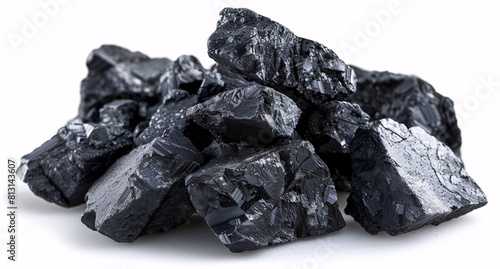Fototapeta premium High-Quality Photograph of Black Coal Pile on a White Background for Stock Image Use