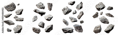 Naklejka premium High-Quality PNG Isolated falling rocks Isolated on White Background – High Resolution