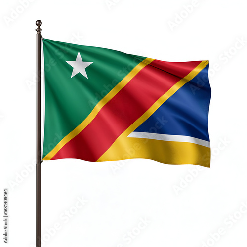 © Nazmin, Obraz premium High quality realistic Lesotho textile flag with satin fabric and stitched edges isolated on white