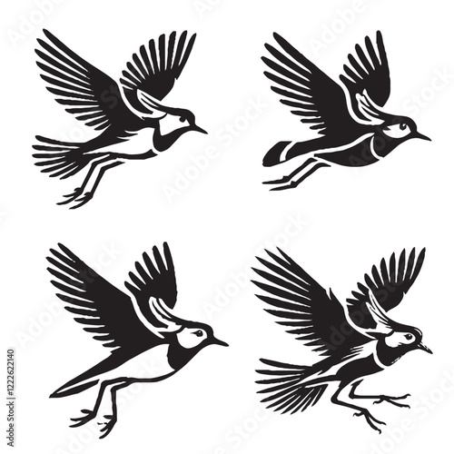 © Furqan, Obraz premium High-Quality Vector Silhouette of a Flying Little Egret on White Background"