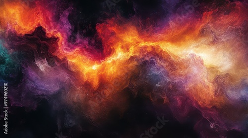 © Danudet.C, Obraz premium High-resolution abstract image of colorful reds, oranges, and purples blending into a dark canvas