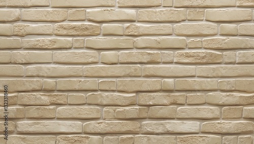© StockKing, Obraz premium High-resolution beige plastered brick wall texture featuring smooth, uniform bricks with subtle variations in color and shape, creating an abstract solid background.