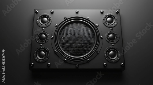 Fototapeta premium High-Resolution Black Speaker with Multiple Drivers and Mesh Grill on Dark Surface