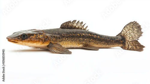 Naklejka premium high resolution capture highlights the striking details of a Bichir a unique fish species from the Polypteridae family displayed on a white background.